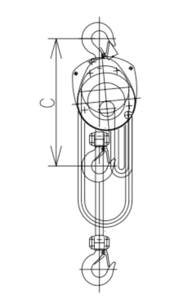 | Carga (kg) | C(mm) | Velocidad de elevación (m/min) | Peso (kg) |