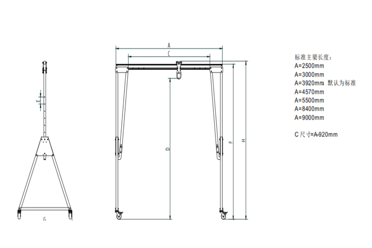 Hay dos tipos principales de pórticos de elevación pequeños: uno es un pórtico totalmente móvil con ruedas de carga con freno, adecuado para elevación a nivel del suelo. El otro es un pórtico fijo montado sobre rieles sobre un piso o viga, que utiliza un polipasto eléctrico o manual para el levantamiento mecanizado. Esto reduce la mano de obra, reduce los costos de producción y operación y mejora la eficiencia del trabajo. Nuestra empresa puede personalizar los productos según los requisitos del sitio del cliente. Los polipastos de pórtico móviles pueden equiparse con un polipasto de cadena manual o con un polipasto de cadena eléctrico, lo que ofrece una gran practicidad y tecnología probada, lo que los hace muy populares entre los fabricantes.