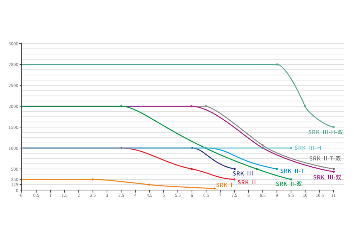 | SRKI | Acero dulce de alta resistencia | 8kg/m2 | 9,12 cm² | 84cm⁴ | 125 kilos (dentro de 2 m del punto de elevación) | El siguiente gráfico | 6m | RAL2002 |