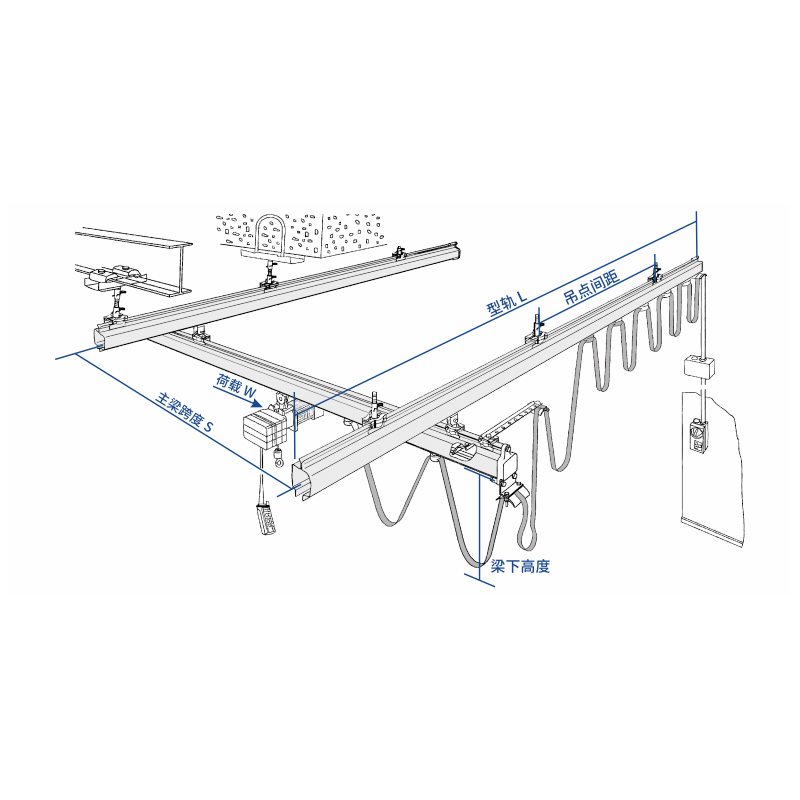 ·Altura del haz: Esto se refiere a la altura de la viga principal donde el carro está suspendido del polipasto (para estructuras independientes, esto generalmente se calcula desde el punto de apoyo del suelo o de la columna).