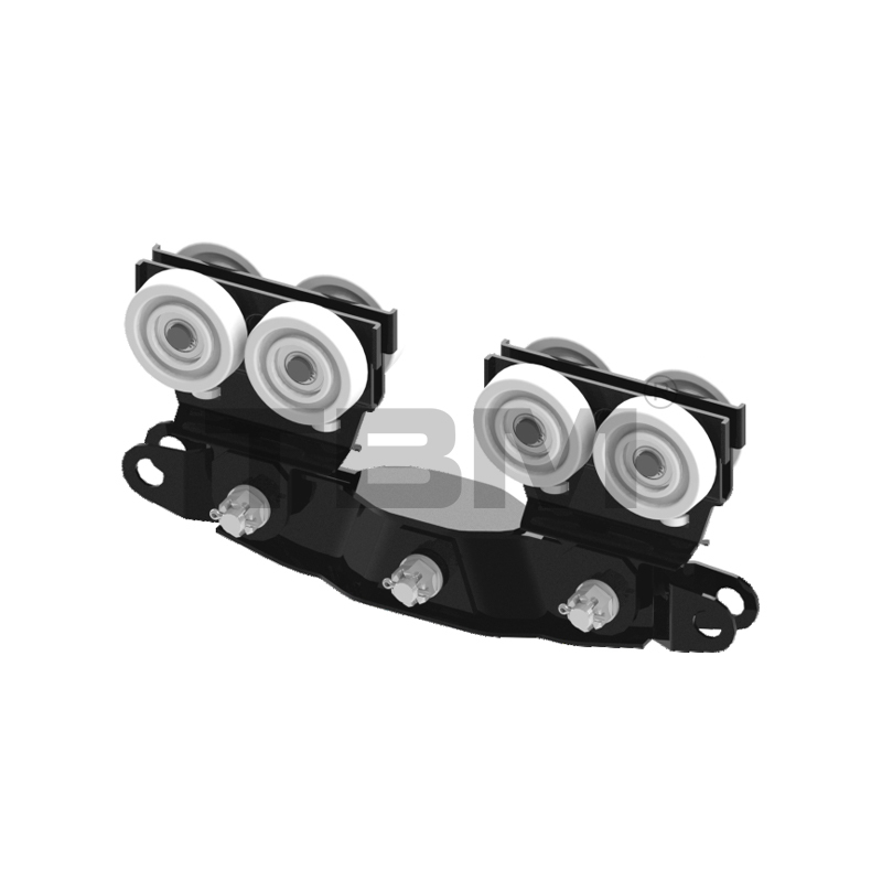 [Las ruedas del carro están fabricadas en nailon de alta resistencia con un ángulo de rueda específico, que se adapta perfectamente a la banda de rodadura. El carro se centra automáticamente durante el funcionamiento. El carro está equipado con una estructura de rueda guía para evitar la fricción con las aberturas de las vías y aumentar la resistencia a la marcha. Dos alas colocadas horizontalmente garantizan que el carro no se salga de la vía en caso de mal funcionamiento, garantizando plenamente la seguridad.]