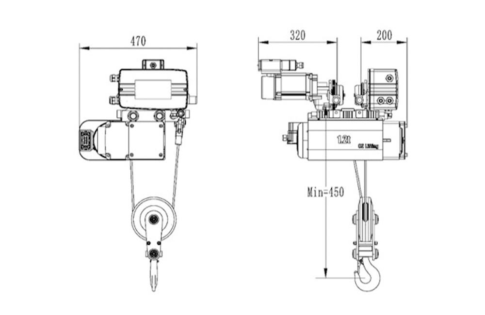 | Tipo | FEM | Cargar (kg) | Hola (m) | Velocidad de elevación (m/min) | Motor de elevación (kW) | Velocidad de viaje (m/min) |